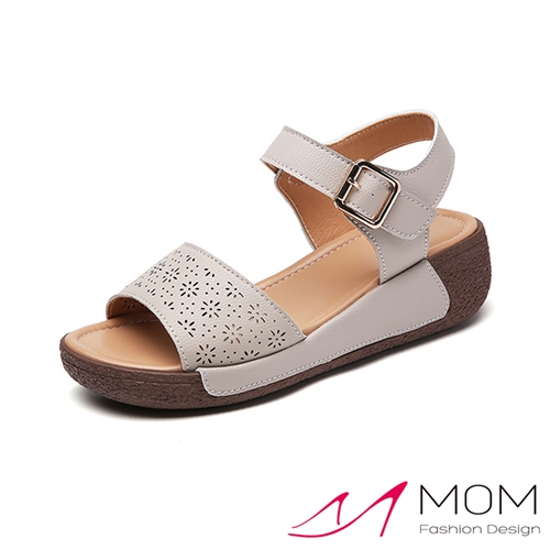 真皮刻花典雅坡跟厚底魔鬼粘涼鞋 灰*MOM* |