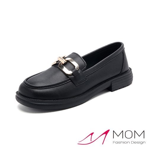 真皮個性金屬鍊釦造型休閒樂福鞋 黑*MOM* |