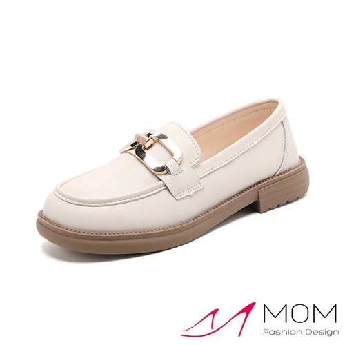 真皮個性金屬鍊釦造型休閒樂福鞋 米*MOM* |