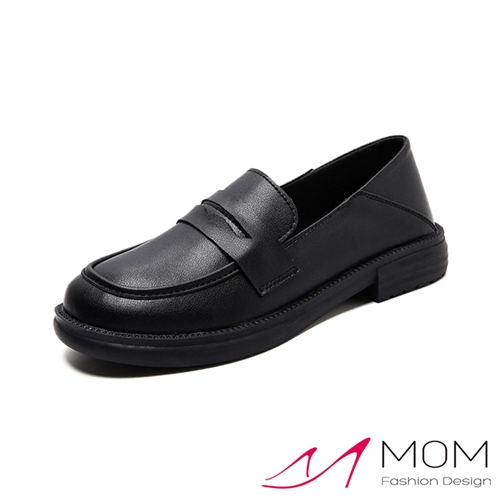 真皮舒適寬楦百搭休閒小皮鞋 樂福鞋 黑*MOM* |