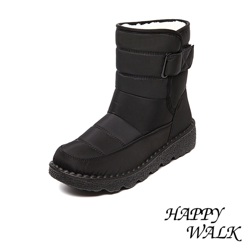 保暖機能防潑水魔鬼粘平底雪靴 戶外雪地靴 黑*HAPPY WALK* |