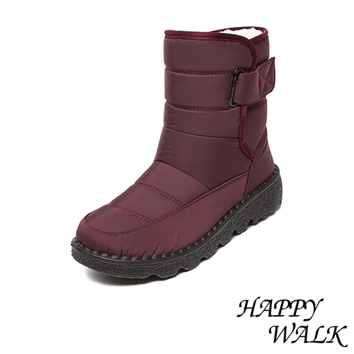 保暖機能防潑水魔鬼粘平底雪靴 戶外雪地靴 紅*HAPPY WALK* |