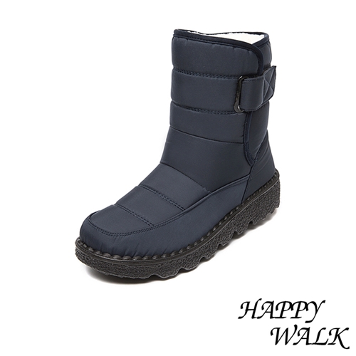 保暖機能防潑水魔鬼粘平底雪靴 戶外雪地靴 藍*HAPPY WALK* |