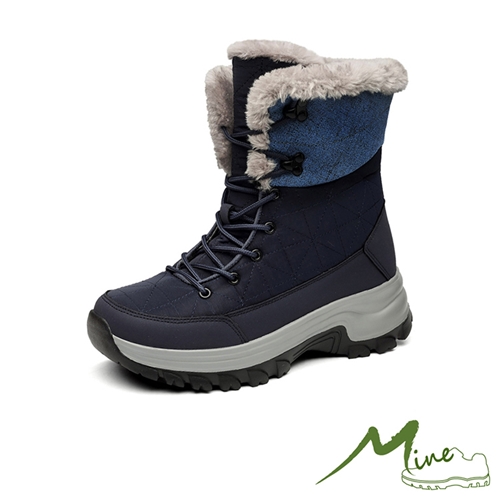 保暖機能個性潮流拼接戶外雪地靴 藍*MINE* |