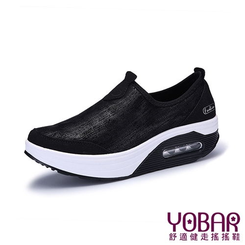 時尚亮彩金沙布面舒適氣墊休閒美腿搖搖鞋 黑*YOBAR* |