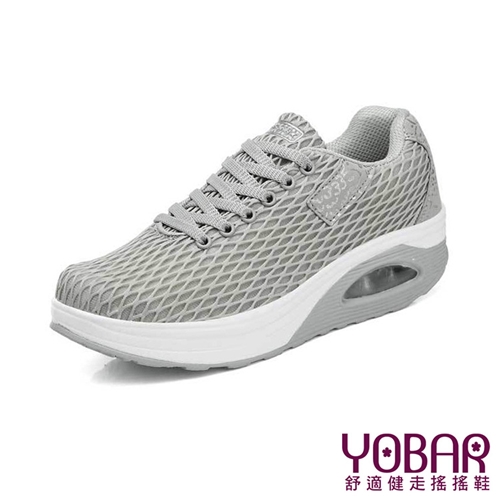 立體網面燙銀拼接繫帶休閒美腿搖搖運動鞋 灰*YOBAR* |