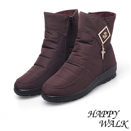 輕量時尚吊墜扣飾雙層防水防滑加厚保暖雪靴 棕*HAPPY WALK* |