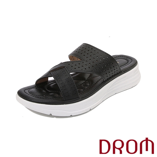 典雅刻紋幾何交叉縷空厚底拖鞋 4色任選*DROM* |