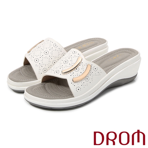 典雅刻花縷空金屬飾條坡跟厚底拖鞋 白*DROM* |