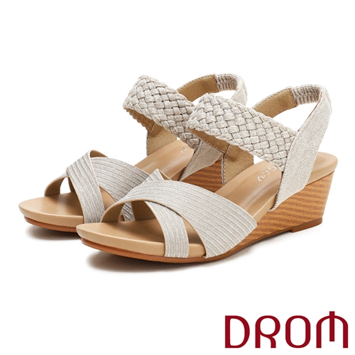 歐美復古亮絲面交叉編織造型坡跟涼鞋 金*DROM* |