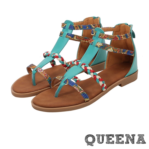 彩色編織復古圖樣縷空線條夾腳低跟涼鞋 3色任選*QUEENA* |