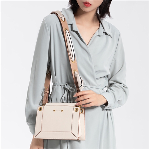真皮法式時尚設計撞色摺邊豆腐小方包 白*felix* |