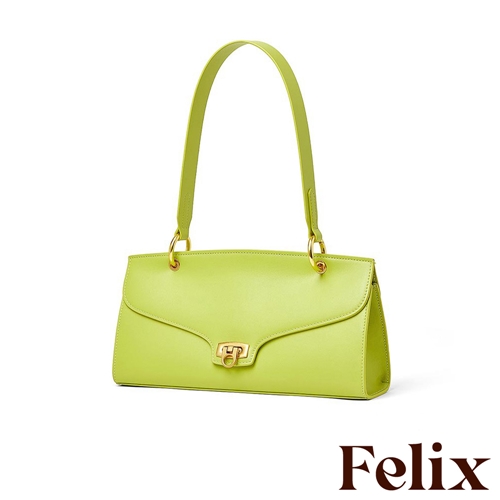 真皮百搭個性單肩斜挎時尚法棍包 綠*felix* |