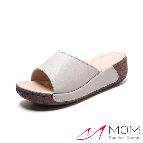 真皮舒適經典鬆糕厚底拖鞋 灰*MOM* |