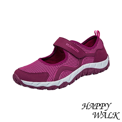 透氣網面拼接魔鬼粘舒適健步休閒鞋 玫紅*HAPPY WALK* |