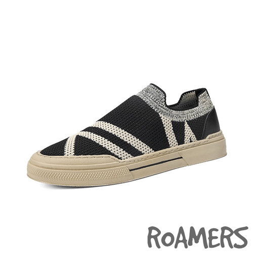 撞色飛織布面彈力休閒板鞋 休閒鞋 黑*ROAMERS* |