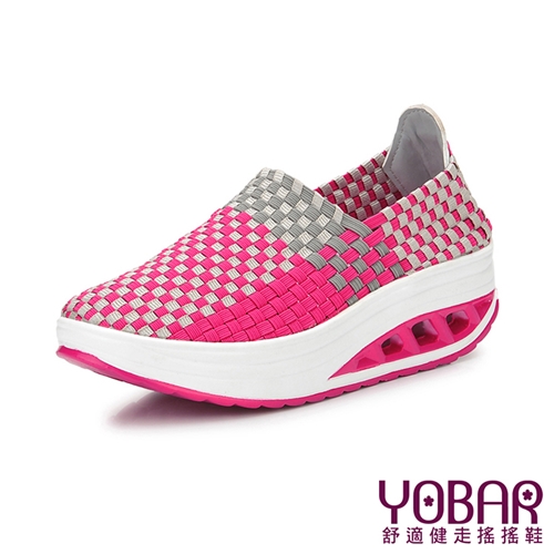 撞色編織彈力飛織帶休閒美腿搖搖鞋 玫紅*YOBAR* |
