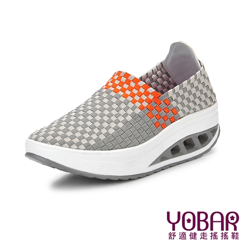 撞色編織彈力飛織帶休閒美腿搖搖鞋 灰*YOBAR* |
