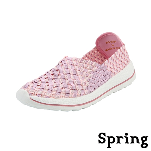 舒適彈力飛織編織帶情侶款厚底休閒鞋 粉*SPRING* |
