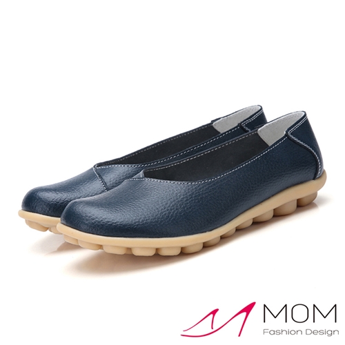 真皮純色素面交叉折疊舒適豆豆休閒鞋 藏青*MOM* |