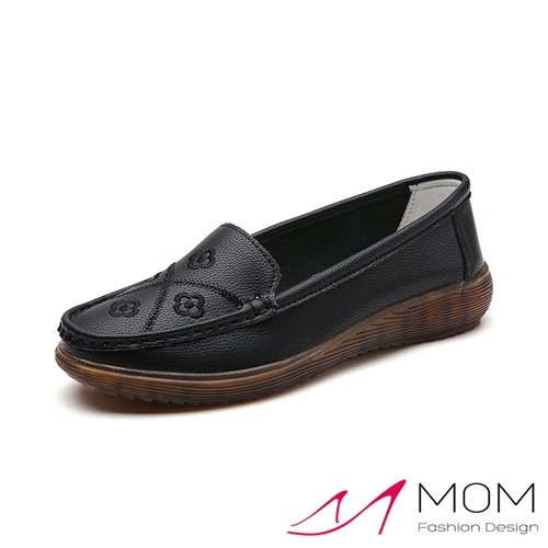 真皮刺繡小花造型舒適軟底休閒鞋 黑*MOM* |