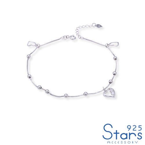 純銀925微鑲美鑽愛心吊墜圓珠造型腳鍊*925 STARS* |