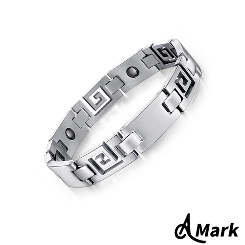 [快速出貨] 個性回字造型鈦鋼鑲嵌黑膽磁石手鍊 女款*A MARK* |