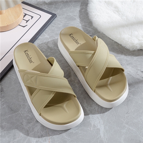 舒適踩屎感厚底交叉魔鬼粘防水沙灘拖鞋 7色任選*NO SUB* |