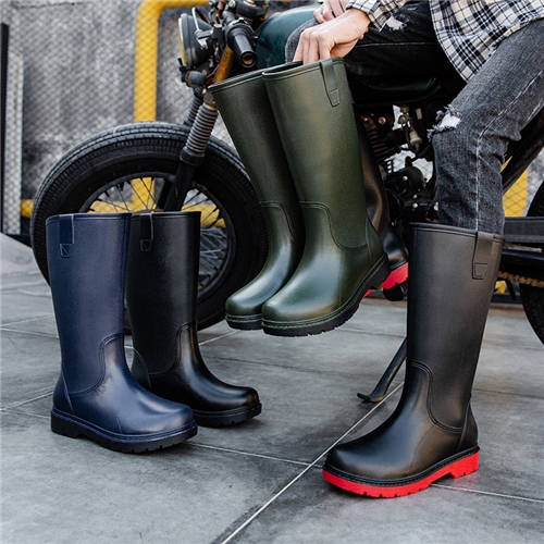 潮流百搭帥氣純色長筒雨靴 戶外休閒防水靴 黑*MINE* |