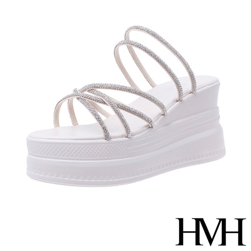 閃耀亮絲細帶交叉造型坡跟厚底拖鞋 米*HMH* |