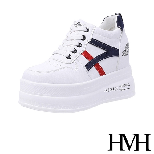 百搭運動風簡約線條造型內增高厚底休閒鞋 白紅*HMH* |