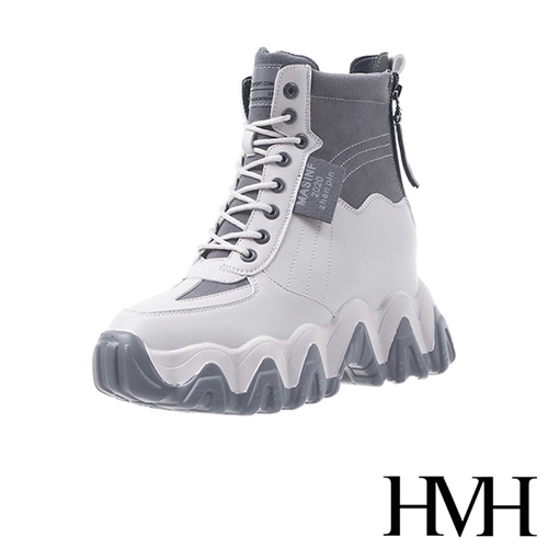 潮流復古百搭撞色繫帶高筒厚底內增高休閒鞋 灰*HMH* |