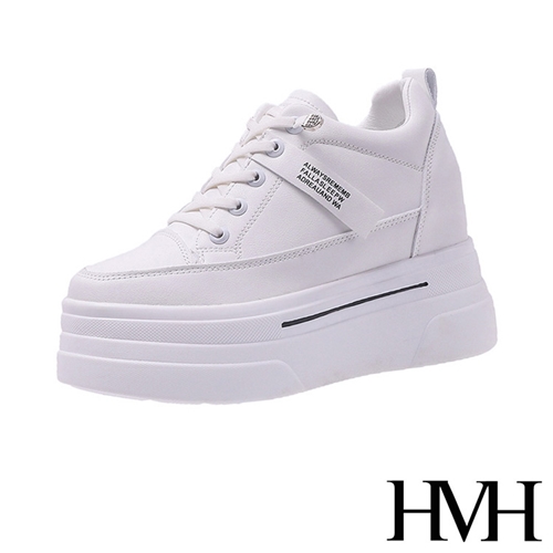 復古百搭厚底時尚繫帶增高休閒鞋 白*HMH* |