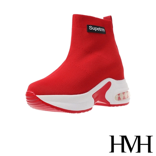 百搭個性飛織襪套造型厚底內增高休閒鞋 紅*HMH* |