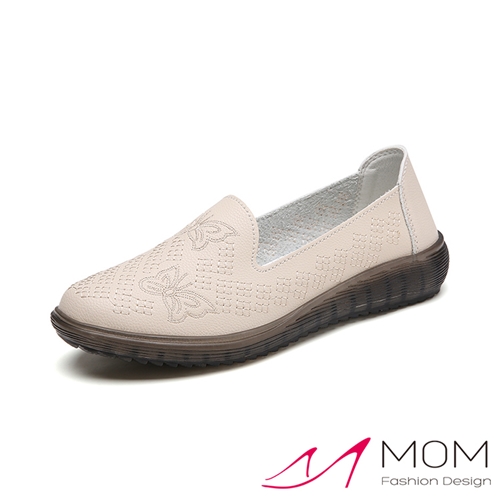 真皮蝴蝶刺繡圖樣造型軟底樂福鞋 休閒鞋 米*MOM* |