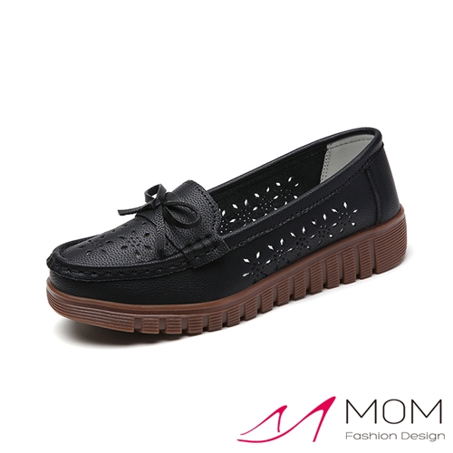 真皮甜美小花縷空蝴蝶結造型軟底樂福鞋 休閒鞋 黑*MOM* |