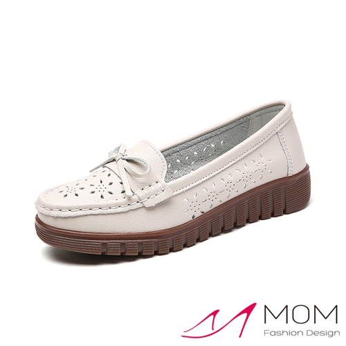 真皮甜美小花縷空蝴蝶結造型軟底樂福鞋 休閒鞋 米*MOM* |