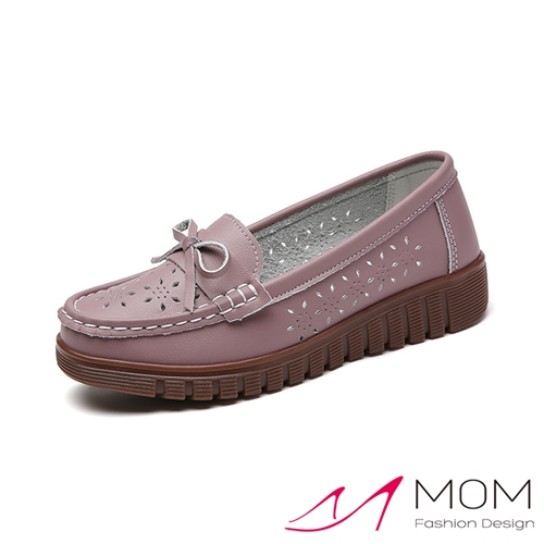真皮甜美小花縷空蝴蝶結造型軟底樂福鞋 休閒鞋 豆沙*MOM* |