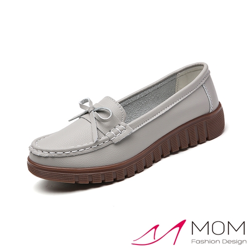 真皮優雅蝴蝶結綁帶造型軟底樂福鞋 休閒鞋 灰*MOM* |
