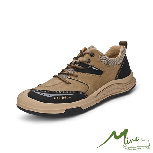 真皮個性拼接護趾機能戶外登山休閒鞋 卡其*MINE* |