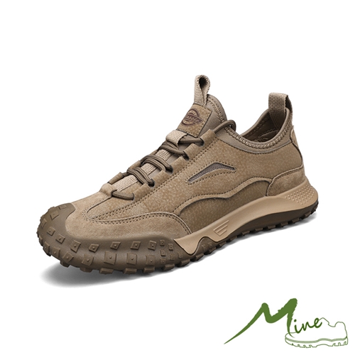 真皮磨砂牛皮復古設計繫帶休閒登山鞋 卡其*MINE* |