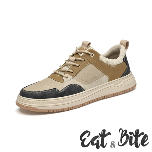 潮流百搭異材質拼接撞色厚底休閒鞋 板鞋 米*E&B* |