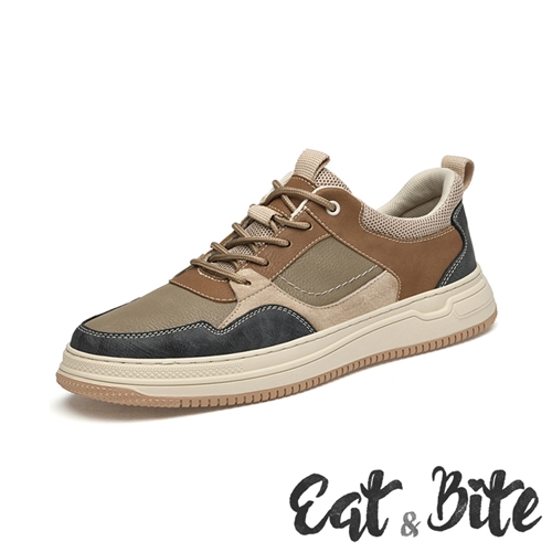 潮流百搭異材質拼接撞色厚底休閒鞋 板鞋 卡其*E&B* |