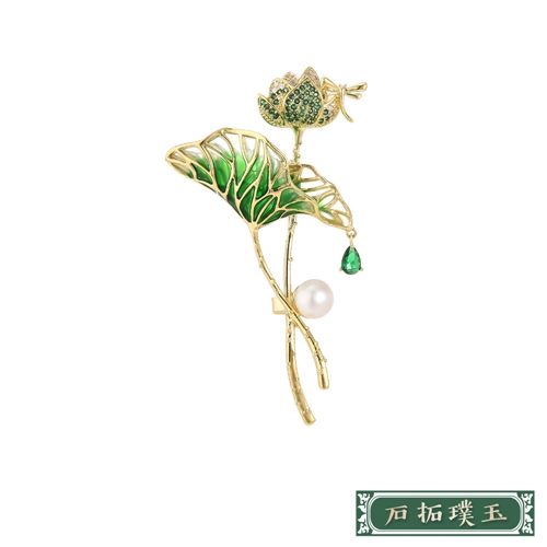 荷塘月色荷葉蜻蜓美鑽鑲嵌淡水珍珠胸針 2色任選*石拓璞玉* |