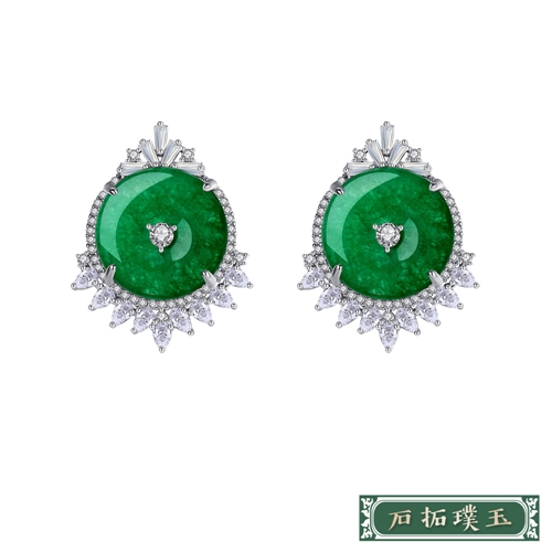 微鑲美鑽典雅綠玉隨造型耳環*石拓璞玉* |
