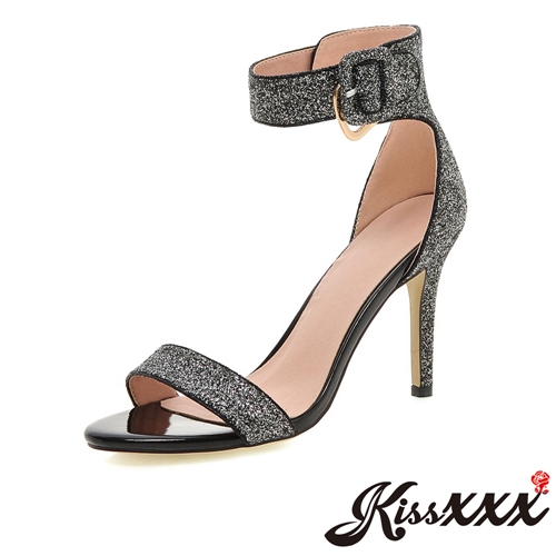 [快速出貨] 璀璨亮片時尚釦環高跟涼鞋 黑*KISSXXX* |