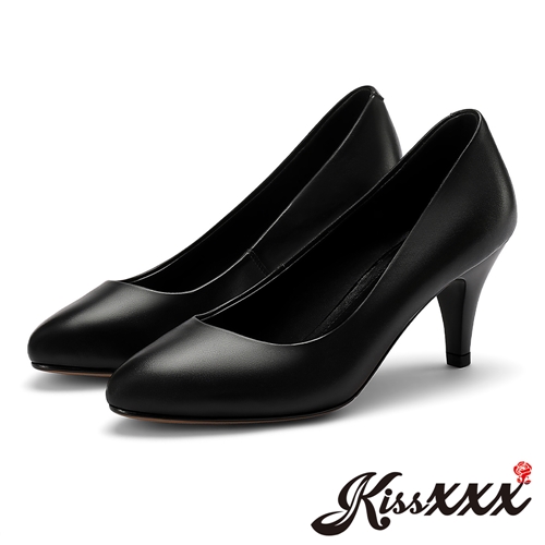 [快速出貨] 真皮頭層小牛皮舒適機能通勤高跟鞋 黑*KISSXXX* |