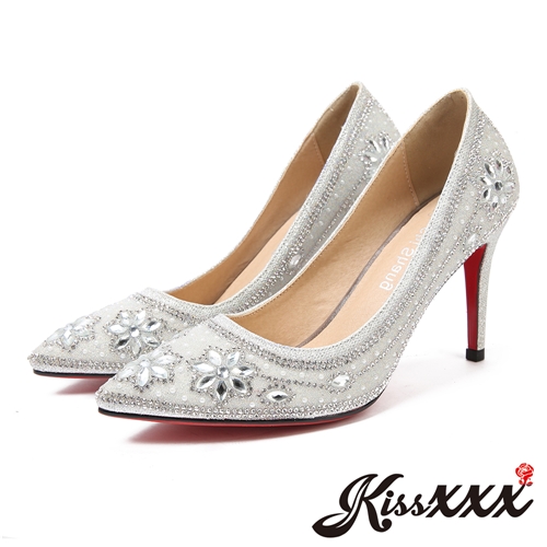 [快速出貨] 花朵寶石燙鑽尖頭淺口高跟鞋 B款跟高9CM*KISSXXX* |