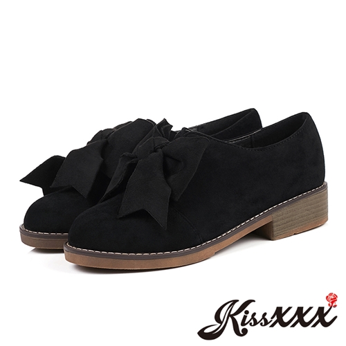 [快速出貨] 復古磨砂絨面大蝴蝶結粗跟休閒鞋 黑*KISSXXX* |