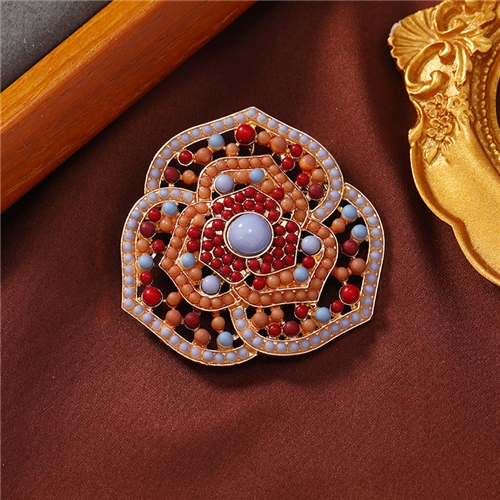 中世紀創意復古彩寶鑲嵌石榴石縷空花朵造型胸針*愛芙晶鑽* |